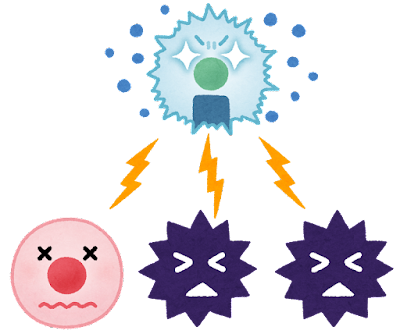 好酸球性副鼻腔炎では、感染、生活環境、アレルギーなどが引き金になって炎症が起きますが、この炎症に免疫細胞から作られる物質であるIL-4(インターロイキン4)、IL-13(インターロイキン13)が深く関わっています。デュピクセントはIL-4とIL-13の働きを抑えます。